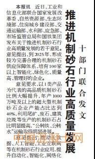 日前,十部門聯(lián)合發(fā)文,推進(jìn)機制砂石行業(yè)高質(zhì)量發(fā)展。持續(xù)困擾從業(yè)人員一年多的原材料問題,在相關(guān)部門的推進(jìn)下,也在逐漸得到解決。