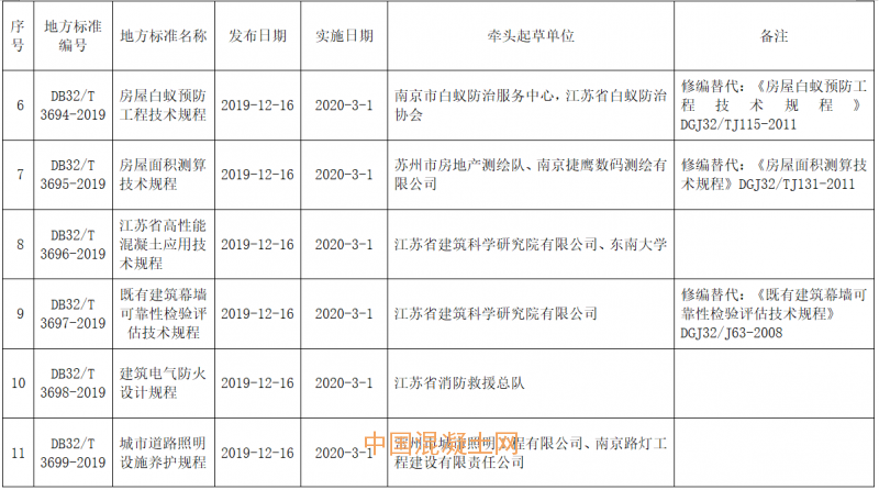 近日,DB32/T 3689-2019《裝配式混凝土建筑施工安全技術規程》等21項江蘇省地方標準發布。