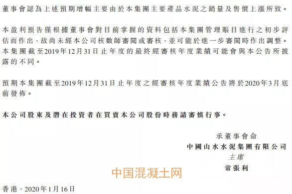 該公司認為,上述預期增幅主要由于集團主要產品水泥之銷量及售價上漲所致。