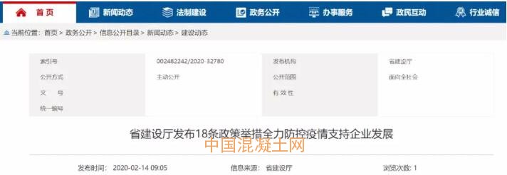 省建設廳發布18條政策舉措全力防控疫情支持企業發展(節選)