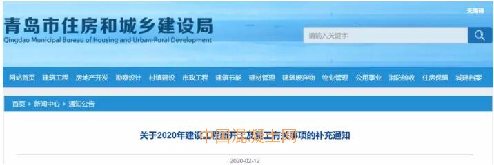 關于2020年建設工程新開工及復工有關事項的補充通知