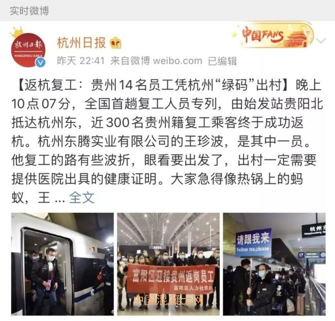 為了讓外地務工人員趕緊回城,杭州宣布:包專列,向疫情平穩(wěn)地區(qū)開專列組織企業(yè)員工返程復工,首批免費。