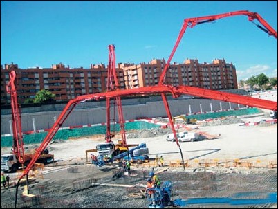 EAB公司抓住機遇,拓展市場,業務量和泵送量成倍增長。4月份,EAB公司即承接了西班牙-法國合資建筑公司GRUPRODIOKRONSA的大型建筑工程混凝土泵送業務,該工程建成后將是西班牙馬德里標志性高檔寫字樓。