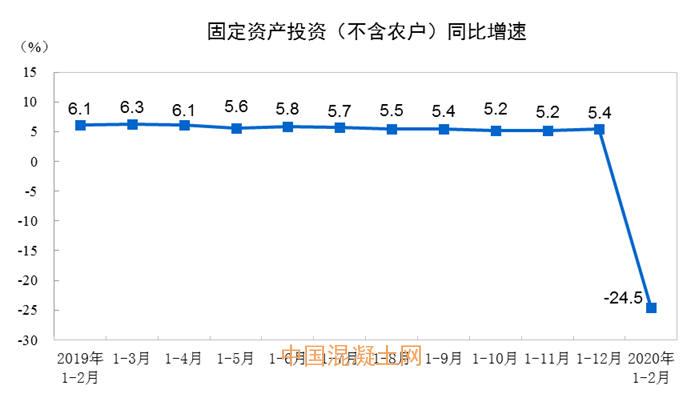 2020年1-2月,全國(guó)固定資產(chǎn)投資(不含農(nóng)戶(hù))3.33萬(wàn)億元,同比下降24.5%,去年同期為增長(zhǎng)6.1%。從環(huán)比速度看,2月份固定資產(chǎn)投資(不含農(nóng)戶(hù))下降27.38%。
