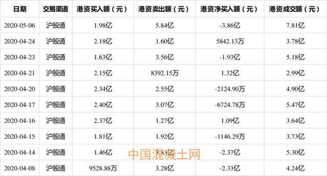 5月6日,海螺水泥現身滬股通十大成交活躍股,位居滬股通港資成交額第7位,港資總計成交7.81億。其中,買入1.98億,賣出5.84億,凈賣出3.86億,凈賣出額占該股當日總成交量的17.9%。