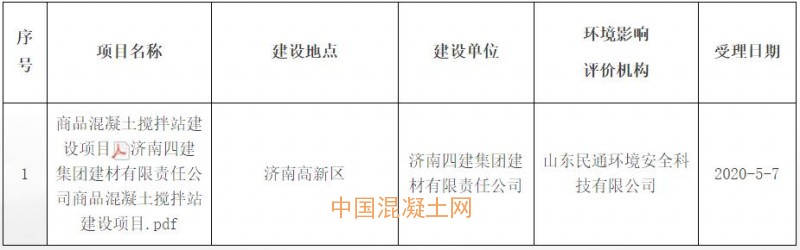 關于《濟南四建集團建材有限責任公司商品混凝土攪拌站建設項目環境影響報告表》的受理公示