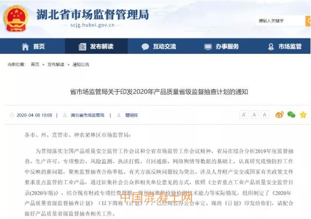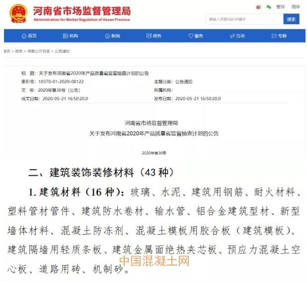 本月初,市場監管總局發布《市場監管總局關于發布2020年產品質量國家監督抽查計劃的公告》(2020年第22號)公告稱2020年產品質量國家監督抽查,堅持民生導向和問題導向,統一生產與流通、線上與線下監管,突出抽查百姓關心關注及質量安全水平下滑的產品,重點檢測涉及人體健康和人身、財產安全的指標。抽查計劃共包括水泥在內的131種產品。
