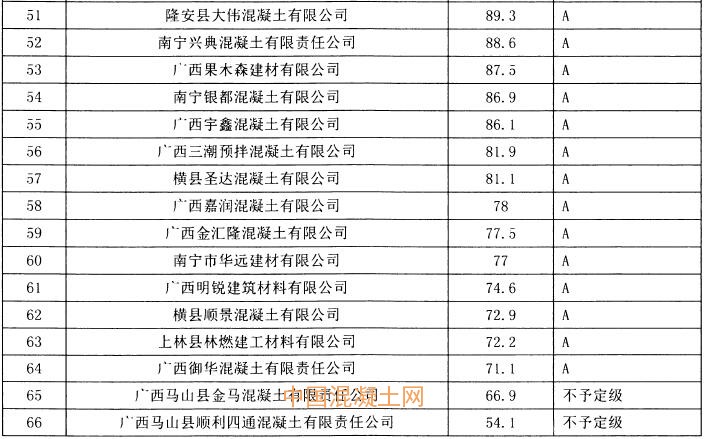 2020年南寧市預(yù)拌混凝土生產(chǎn)企業(yè)信用考核評(píng)價(jià)等級(jí)