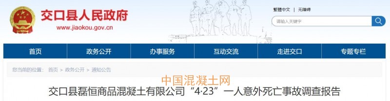 經交口縣磊恒商品混凝土有限公司“4·23”一人意外死亡事故調查組調查,并報交口縣人民政府批復同意,認定交口縣磊恒商品混凝土有限公司“4·23”亡人事故是一起因突遇瞬時大風導致身體失衡致手中的扣條被瞬時大風吹起碰觸距樓頂3.15米的10KV線路(自備線路),被電擊死亡的突發意外事故。依據《生產安全事故統計管理辦法》第六條規定,該起事故符合統計核銷條件。