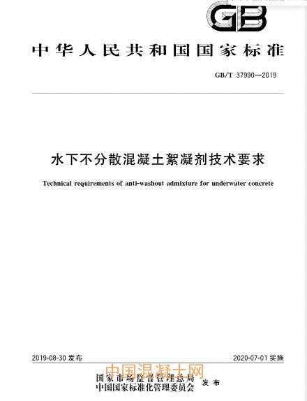 2020年7月1日,外加劑行業標準GB/T 37990-2019《水下不分散混凝土絮凝劑技術要求》正式實施。
