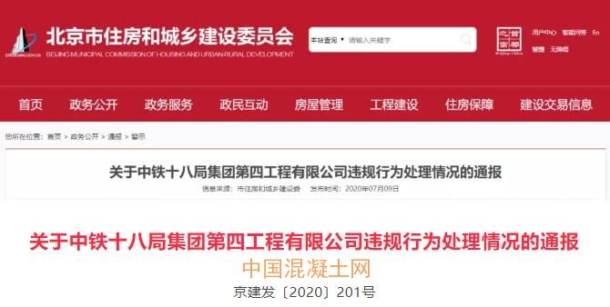 7月7日,北京市住房和城鄉(xiāng)建設(shè)委發(fā)布通報(bào)稱,中鐵十八局集團(tuán)第四工程有限公司未能履行北京市復(fù)工復(fù)產(chǎn)防疫措施承諾,施工現(xiàn)場(chǎng)未能落實(shí)市委市政府及市住房城鄉(xiāng)建設(shè)委防疫防控工作要求,導(dǎo)致疫情發(fā)生,造成了極其惡劣的社會(huì)影響;施工現(xiàn)場(chǎng)揚(yáng)塵治理不達(dá)標(biāo),且情節(jié)特別嚴(yán)重,市住房城鄉(xiāng)建設(shè)委決定對(duì)工程建設(shè)、施工、監(jiān)理單位全市通報(bào)批評(píng),對(duì)中鐵十八局集團(tuán)第四工程有限公司暫停在北京建筑市場(chǎng)投標(biāo)資格5個(gè)月。