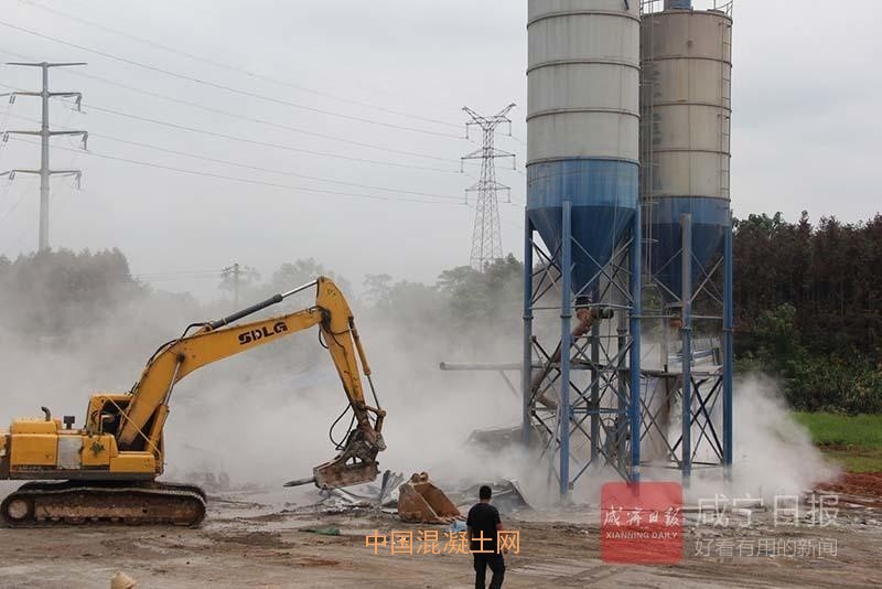 7月14日,咸寧市住建、生態環境、市場監管、自然資源和規劃等部門與咸寧高新區市場監管和綜合執法局、橫溝橋鎮政府組成聯合執法組,對咸寧高新區橫溝橋鎮孫田村一非法商砼攪拌站進行強制拆除。