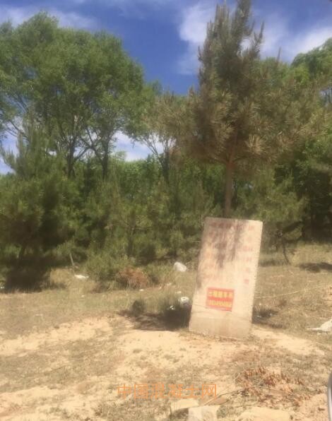 在走訪時發(fā)現(xiàn),就在該攪拌站外邊立有兩個石碑,一個上面寫著“未成林管護牌”,緊緊挨著攪拌站出口,周邊已經(jīng)有很多松樹被鏟除,不遠處還有一個石碑上面寫著“國營林場 天保管護”,這個石碑周圍也多數(shù)是松樹,現(xiàn)場也有被鏟除的跡象。