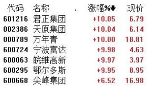 30日水泥板塊整體走強,截至收盤,除萬年青外,君正集團、天原集團、寧波富達、皖維高新等多股均漲停。