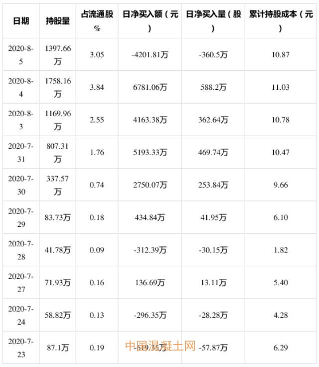 2020年8月5日,福建水泥獲外資賣出360.5萬(wàn)股,占流通盤0.79%,上榜陸股通日減倉(cāng)前十。截至目前,陸股通持有福建水泥1397.66萬(wàn)股,占流通股3.05%,累計(jì)持股成本10.87元。持股盈利6.69%。