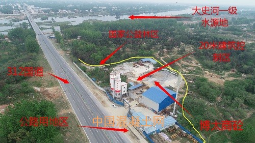 2019年初,固始縣檢察院履職時發現,位于該縣312國道與100縣道交叉口西南角的博太建材有限公司(下稱建材公司),未經批準違規占地生產混凝土,大量廢渣廢水未經處理直接排入河溝。同年4月,該院采用技術手段對建材公司進行第一次現場勘查,發現建材公司商混站總占地面積約18畝,四個砂石攪拌罐距離國道不足十米,廠區內工業廢料隨意堆放,工業廢水直接排入場區東邊的樹林中,造成多年生長的樹木枯死和土壤層固化,更為嚴重的是廢水東流進入史河,那里有城區生活用水的五個取水口,威脅城區居民的飲水安全。
