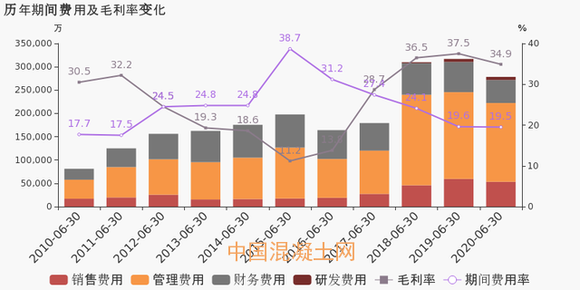 公司2020半年度營業成本92.8億,同比下降8.2%,低于營業收入11.9%的下降速度,毛利率下降2.6%。期間費用率為19.5%,同去年相比變化不大。