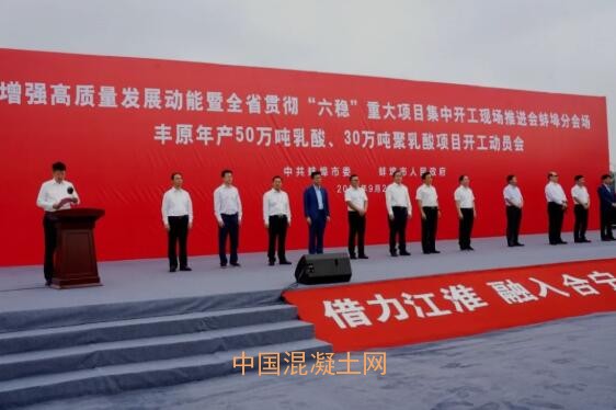 為進一步探索公司新材料產業轉型升級,應安徽省蚌埠市委、市政府邀請,2020年9月26日,在中國(安徽)自由貿易試驗區揭牌后第三天,海螺創業在安徽省關于增強高質量發展動能暨全省貫徹“六穩”重大項目集中開工現場推進會蚌埠分會場參加豐原集團年產50萬噸乳酸、30萬噸聚乳酸項目開工動員會。