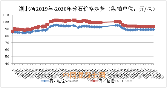 監(jiān)測(cè)數(shù)據(jù)顯示:8月份,碎石(粒徑5-16mm)、碎石(粒徑17-31.5mm)均價(jià)分別為89.25元/噸、93.65元/噸,環(huán)比分別上漲0.22%和0.11%,同比分別下跌5.56%和7.90%。具體價(jià)格走勢(shì)情況如下圖:
