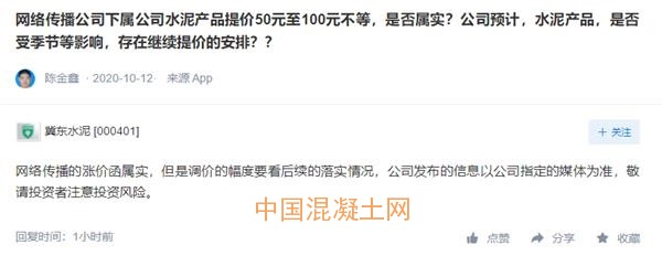 10月13日早間,冀東水泥回應稱,網絡上傳播的漲價函屬實,但是漲價的幅度要看后續的落實情況。