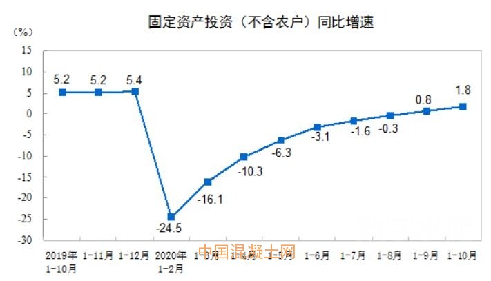 2020年1-10月份,全國固定資產投資(不含農戶)483292億元,同比增長1.8%,增速比1-9月份提高1.0個百分點。其中,民間固定資產投資269183億元,下降0.7%,降幅收窄0.8個百分點。從環比速度看,10月份固定資產投資(不含農戶)增長3.22%。
