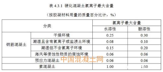 設(shè)計使用年限為50年的混凝土結(jié)構(gòu),混凝土拌合物中水溶性氯離子最大含量應(yīng)符合以下要求:
