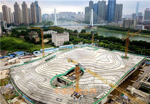 來到館外,只見滿眼白色“梯田”在陽光照耀下熠熠生輝。“奇特罕見的屋頂結構造型,是建設施工的又一難點。”中建三局項目負責人解釋,琴臺美術館采用“梯田山體”屋頂造型設計,由一道道“梯田”構筑而成,屋面邊緣垂至“山腳”,幾乎與月湖水面持平。奇特的造型衍生了2萬余平方米的大跨度雙曲面屋蓋,任何一塊區域的曲率均不一致,且無規律可循。為了攻克這一難關,項目部專門搭建了可視化立體模型,通過BIM技術精準確定每一塊蜂窩狀密肋梁的標高,仿造出復雜多變的山體造型。屋面上一圈圈由等高線反坎形成的梯田,線型異形多變,定位點多達上萬個。為了實現曲面平滑過渡,施工中運用了放樣機器人,最終如期完成主體結構施工任務。