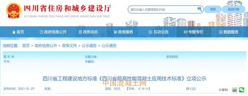 四川省工程建設(shè)地方標(biāo)準(zhǔn)《四川省超高性能混凝土應(yīng)用技術(shù)標(biāo)準(zhǔn)》立項(xiàng)公示