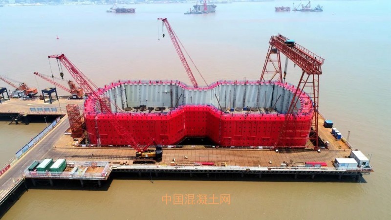 2018年11月19日,南塔迎來最后一層承臺混凝土澆筑施工。11月20日,承臺施工正式完工。除封底外,承臺分3層澆筑,每次連續澆筑量近8000立方米。依靠智慧團隊的不斷探索和智能化實時溫度監控設備的改進,最終完美實現南塔承臺3萬立方米混凝土澆筑無一裂縫,比原計劃提前35天完工。