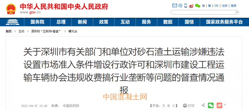 近日,根據企業和群眾在國務院“互聯網+督查”平臺反映的問題線索,國辦督查室派員赴廣東省深圳市明察暗訪發現,深圳市有關部門和單位涉嫌違法設置砂石渣土運輸市場準入條件、違法增設砂石渣土運輸車輛(當地稱“泥頭車”)營運行政許可,深圳市建設工程運輸車輛協會(原深圳市自卸車協會)利用行政委托事項違規收費,強制企業入會并收取會費,以自律名義搞行業壟斷,嚴重破壞公平競爭的市場環境。現將督查發現的典型問題通報如下: