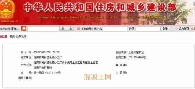關于啟用全國工程質量安全監管信息平臺的通知