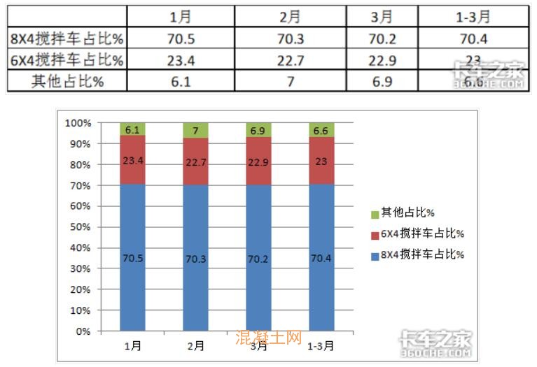 上圖表可見,在2021年1-3月各月中,8X4攪拌車在各月的銷量占比均超出7成,成為各月攪拌車市場的主流車型。為啥8X4攪拌車成為目前市場最歡迎的車型?