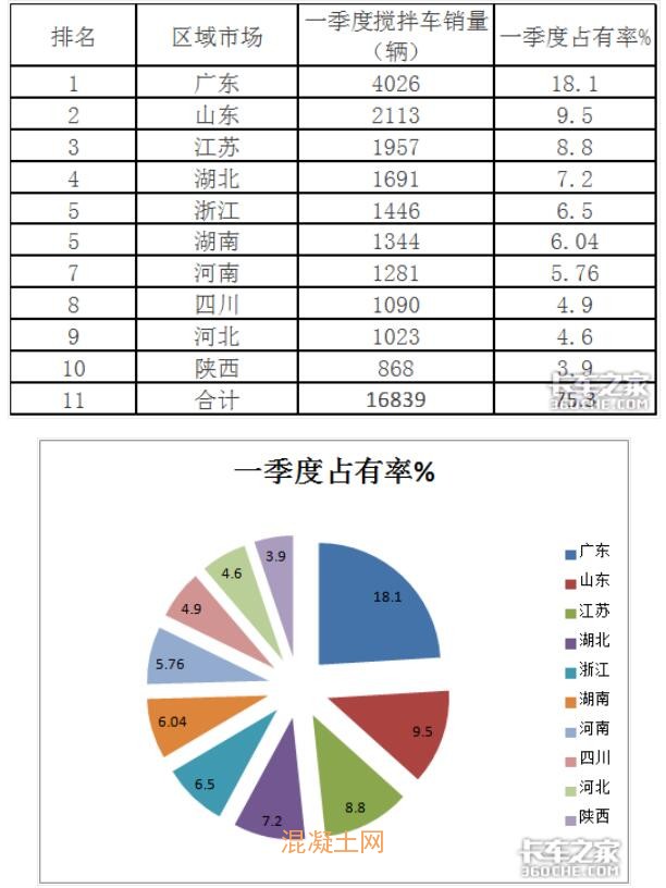 上述數據同時也說明今年一季度的攪拌車主要是流向我國經濟大省。