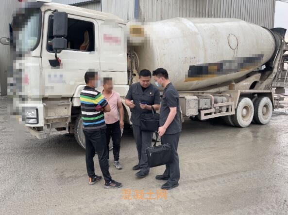 工業(yè)園攪拌站內(nèi),塵土飛揚,伴著深一腳淺一腳的水泥,在申請執(zhí)行人的引導(dǎo)下,執(zhí)行干警終于找到正在運營施工的涉案車輛。在要求駕駛員停止施工并下車后,工地職工紛紛圍了上來。經(jīng)過執(zhí)行干警釋法明理,圍觀群眾才退去。
