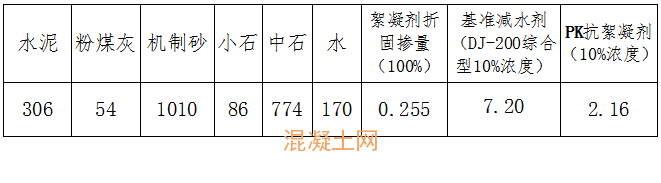 其中暫定基準減水劑摻量為2.0%,抗絮凝劑摻量為0.6%。