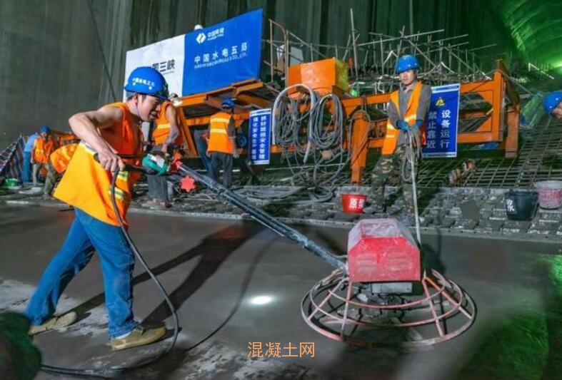 泄洪洞龍落尾底板收面,工人正在抹面,使混凝土平整光滑。劉濤攝