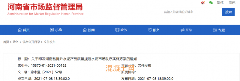 河南省市場監(jiān)督管理局、河南省工業(yè)和信息化廳、河南省發(fā)展和改革委員會、河南省生態(tài)環(huán)境廳、河南省商務廳、中華人民共和國鄭州海關等部門印發(fā)《河南省提升水泥產品質量規(guī)范水泥市場秩序實施方案》,詳情如下: