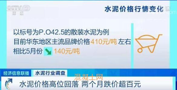 據了解,從今年3月份開始水泥價格行情一路上漲,到5月份價格達到高點,隨后價格開始持續下跌。以標號為P.O42.5的散裝水泥為例,目前華東地區主流品牌價格為410元/噸左右。相比5月份下跌了140元/噸,而在山東、河南等地主流品牌價格為390元/噸,相比5月份下跌了130元/噸。