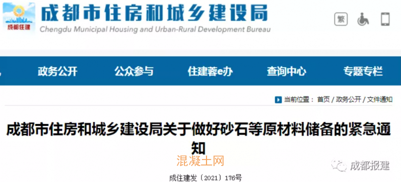 成都市住房和城鄉(xiāng)建設(shè)局關(guān)于做好砂石等原材料儲備的緊急通知