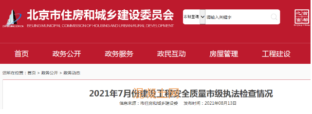 為深入貫徹落實疫情防控相關工作要求,加強建設工程施工現場疫情防控,同時進一步加強全市建設工程安全質量管理工作,督促工程建設各方主體增強安全質量責任意識,北京市住房城鄉建設委成立市級聯合檢查組持續開展市級執法檢查工作。7月份,累計出動各類檢查組366組次,檢查人員950人次,抽查工程398項次,發現問題1038條。針對發現的問題,向相關責任單位下發責令改正通知書101份,其中安全類79份、質量類22份;擬立案處罰83起,其中安全類71起、質量類12起。
