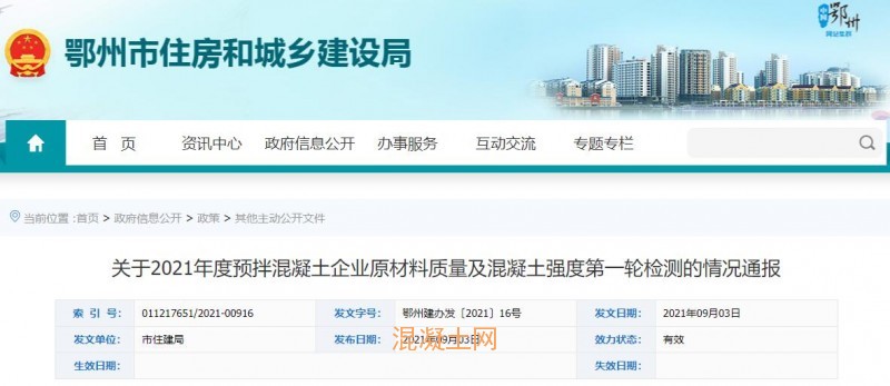 近日,鄂州市住建局發(fā)布了《關(guān)于2021年度預(yù)拌混凝土企業(yè)原材料質(zhì)量及混凝土強度第一輪檢測的情況通報》,2021年6月—8月,鄂州市住建局委托建設(shè)工程質(zhì)量檢測機構(gòu),按照“四不兩直”的方式,對全市正常生產(chǎn)經(jīng)營的35個預(yù)拌混凝土攪拌站,現(xiàn)場取樣制作混凝土試塊,現(xiàn)場抽取砂、石、水泥、粉煤灰、粒化高爐礦渣粉等材料樣品,進行了混凝土試塊強度檢測和原材料質(zhì)量檢測。