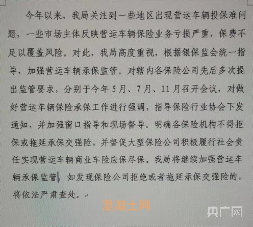 太平洋保險業務員:買不了。我們太保已經好久沒有做攪拌車(的交強險)了。