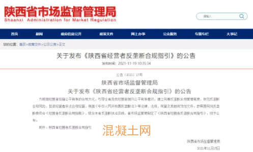 日前,陜西省市場監管局發布《陜西省經營者反壟斷合規指引》的公告。明確指出:水泥、砂石、混凝土行業經營者,由于商品特性使然,銷售距離受限,本地化銷售特征較為明顯,因而銷售市場相對固定,經營者應當根據市場情況獨立定價、銷售,避免實施達成相關壟斷協議行為。
