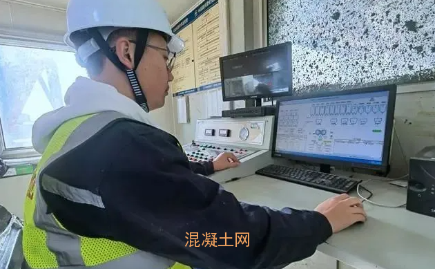 中鐵四局貴南5標工作人員進行攪拌站混凝土拌合