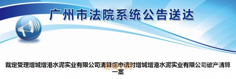 2022年2月17日,廣東省廣州市中級人民法院發布公告《裁定受理增城增港水泥實業有限公司清算組申請對增城增港水泥實業有限公司破產清算》,詳情如下: