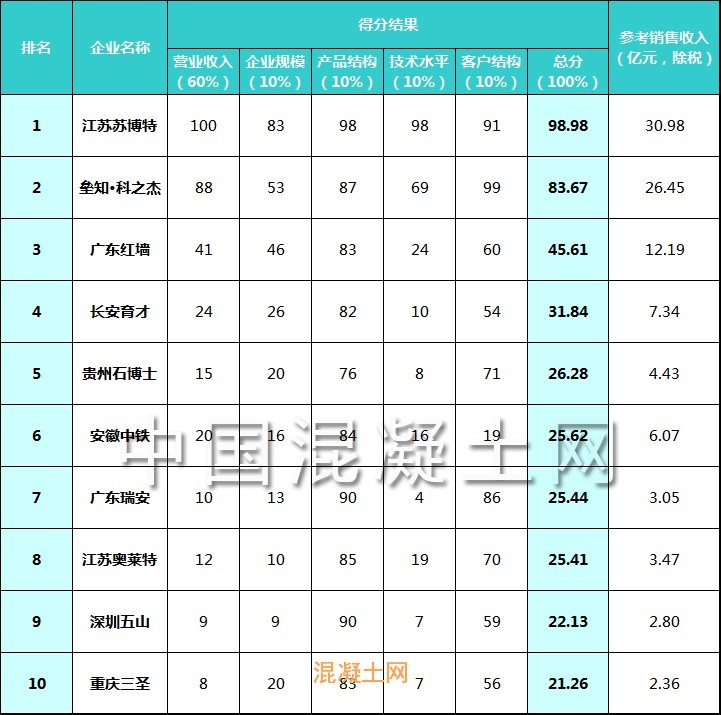 注:以2020年各企業實際銷售額為依據,經過對各項數據的權重比較得出最終排名。(聚羧酸減水劑銷量以20%濃度計算)