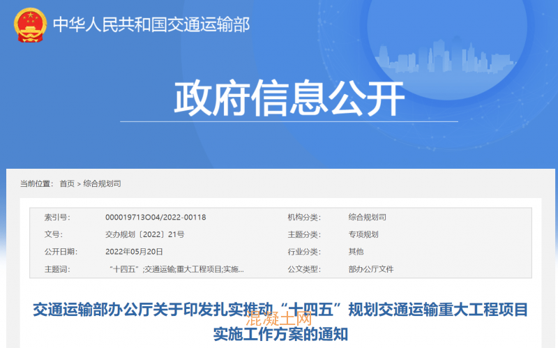 為深入貫徹黨中央、國務院關于加快推進“十四五”規劃重大工程項目建設的決策部署,經交通運輸部同意,現將《關于扎實推動“十四五”規劃交通運輸重大工程項目實施的工作方案》印發給你們。請各單位各部門加強組織領導,壓緊壓實責任,細化實化工作措施,認真抓好貫徹落實,確保交通運輸重大工程項目建設取得實效,為保持經濟運行在合理區間、保持社會大局穩定作出積極貢獻,以優異成績迎接黨的二十大勝利召開。