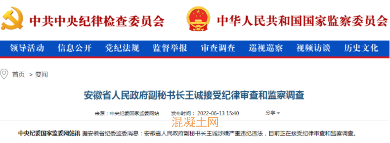 中央紀委國家監委網站6月13日信息顯示,據安徽省紀委監委消息:安徽省人民政府副秘書長王誠涉嫌嚴重違紀違法,目前正在接受紀律審查和監察調查。被查的安徽省人民政府副秘書長王誠,正是海螺集團原董事長王誠。