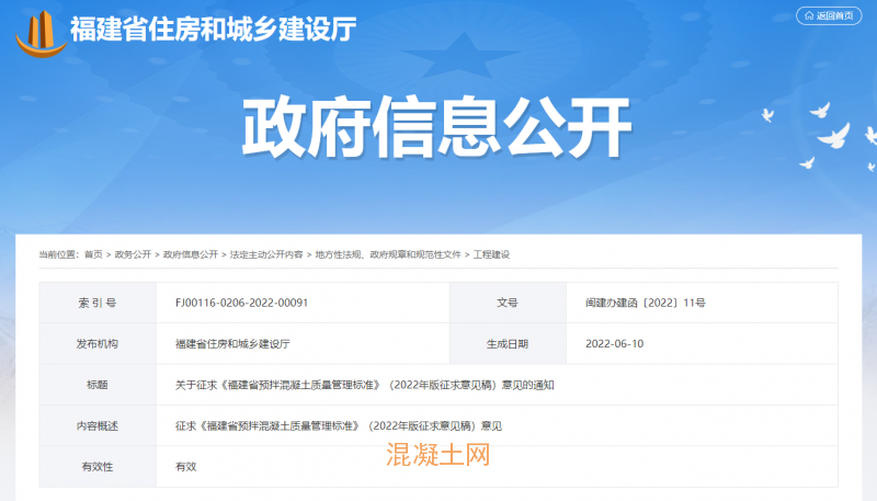關于征求《福建省預拌混凝土質量管理標準》(2022年版征求意見稿)意見的通知
