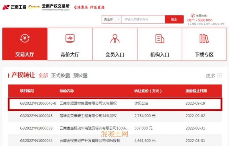 8月18日,云南產(chǎn)權(quán)交易所官網(wǎng)發(fā)布公告,云南水泥建材集團(tuán)有限公司擬轉(zhuǎn)讓50%股權(quán)。